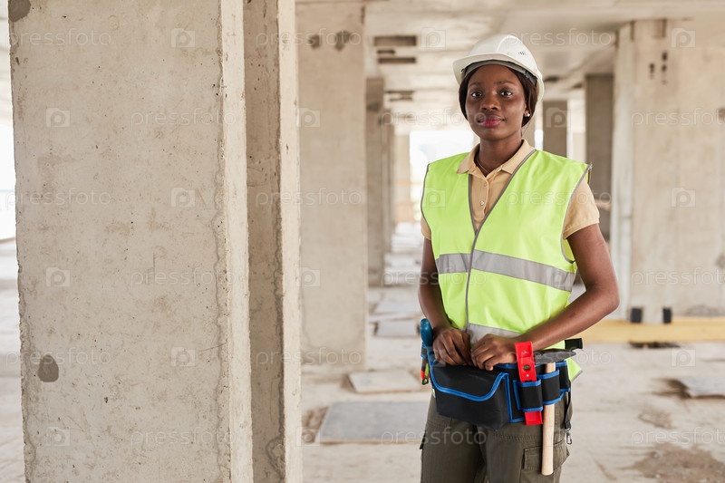 Женщина-строительница улыбается