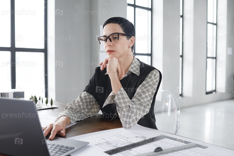 Деловая женщина, использующая ноутбук на работе