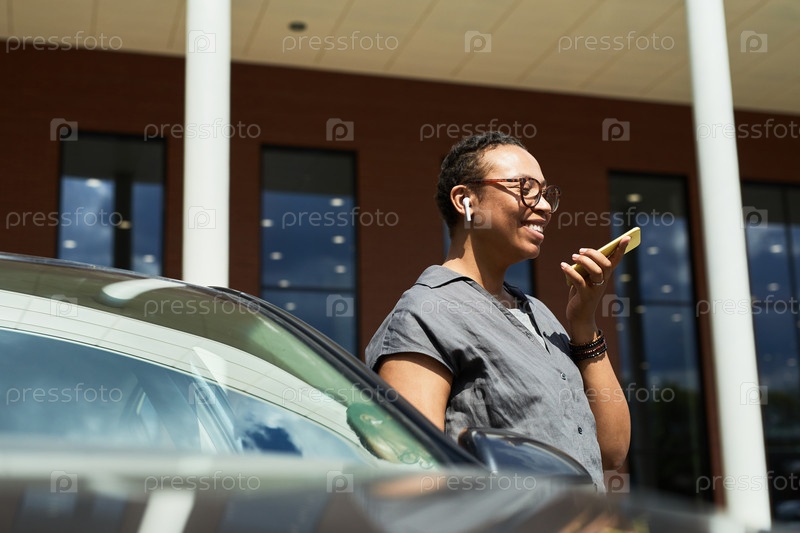 Женщина записывает сообщение на мобильный телефон
