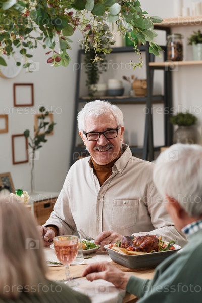 Старший мужчина ужинает