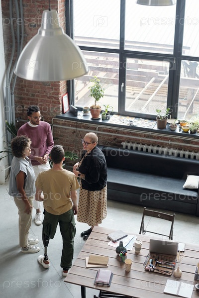 Молодые уверенные в себе коллеги обсуждают рабочие моменты на встрече