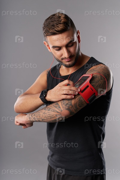 Спортсмен, устанавливающий фитнес-трекер