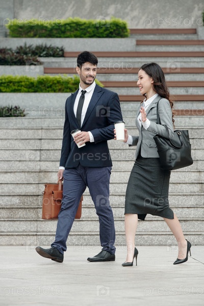 Говорящие коллеги ходят на улице