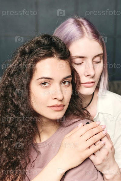 Брюнетка обнимается девушкой