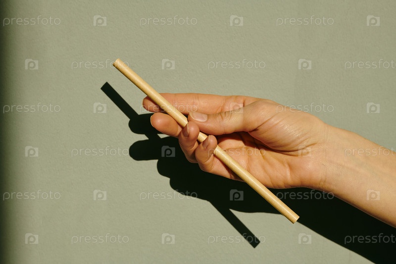 Рука молодой женщины, держащей палку перед камерой