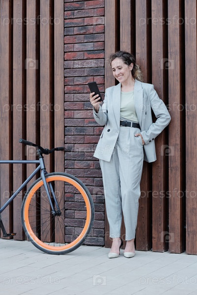 Хорошо одетая деловая женщина, разговаривающая через видеочат на открытом воздухе