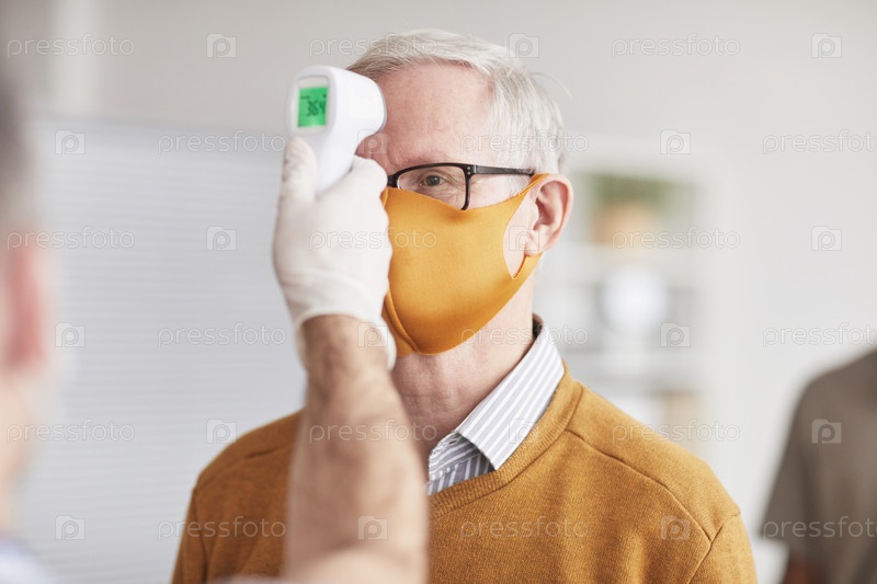 Старший человек при проверке безопасности в клинике
