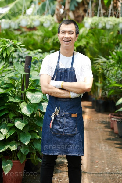 Уверенный мужчина в питомнике растений