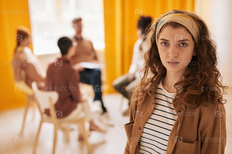 Молодая женщина на групповом сеансе терапии