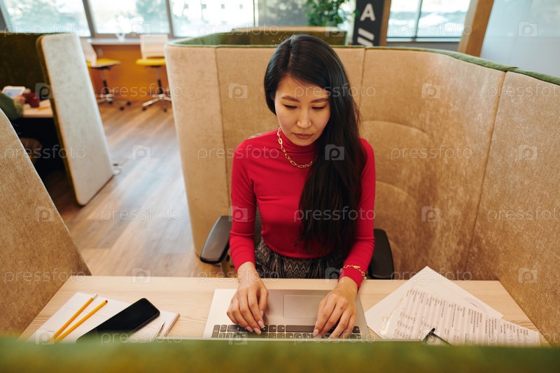 Современная азиатская деловая женщина или офисный менеджер общаются на рабочем столе