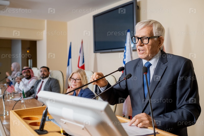 Старший политик выступает с вдохновляющей речью