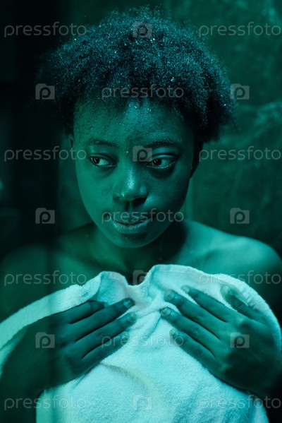 Женщина, вытирающая свое тело после душа