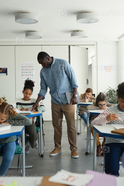 Учитель помогает детям в классе