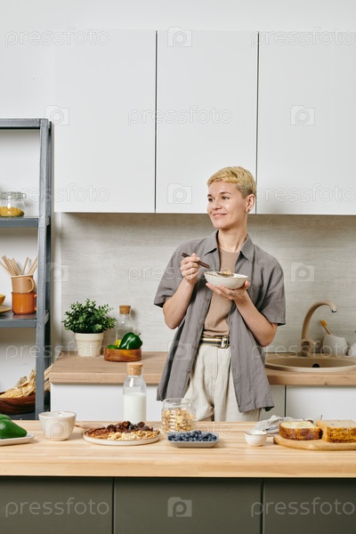 Человек, завтракающий на кухне