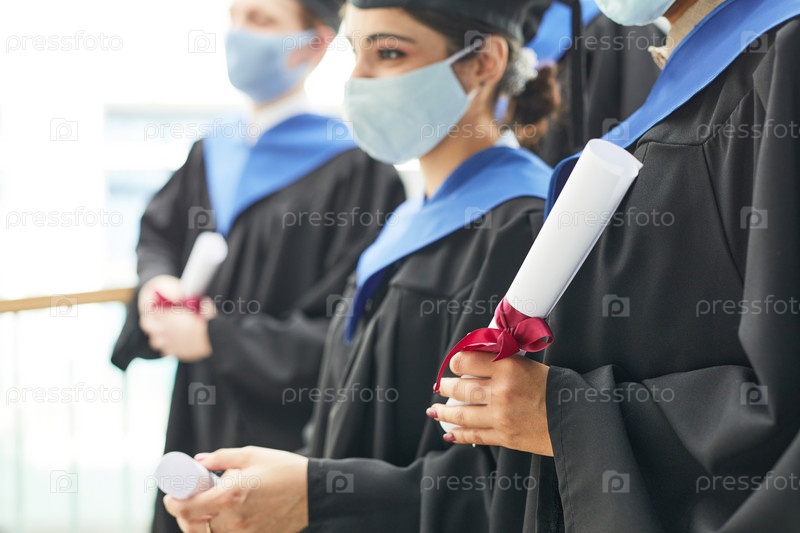 Выпускники, носящие маски в очереди