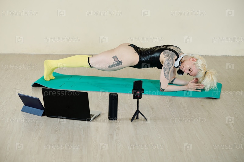 Фитнес-блогер делает планк