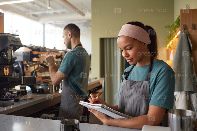 Молодая официантка делает инвентаризацию в баре