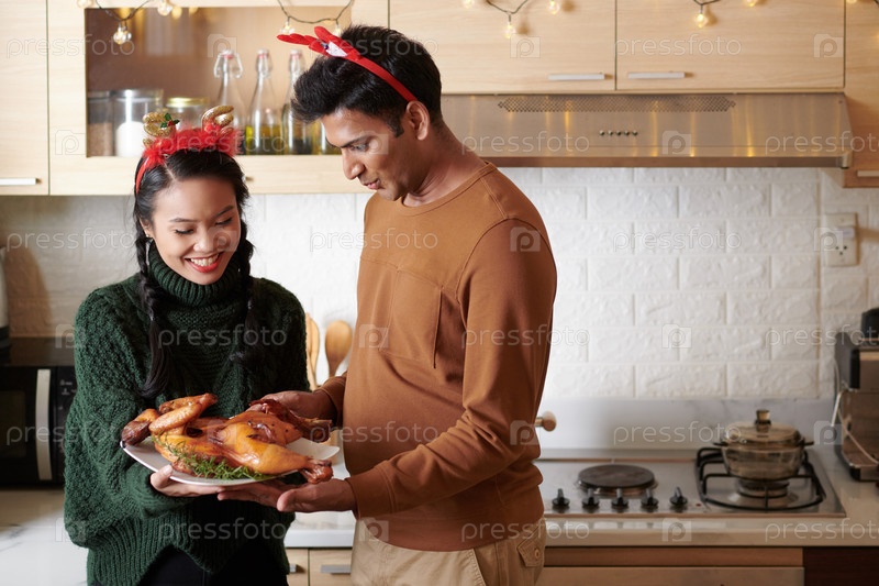 Мужчина в восторге от того, чтобы съесть курицу на рождественский ужин