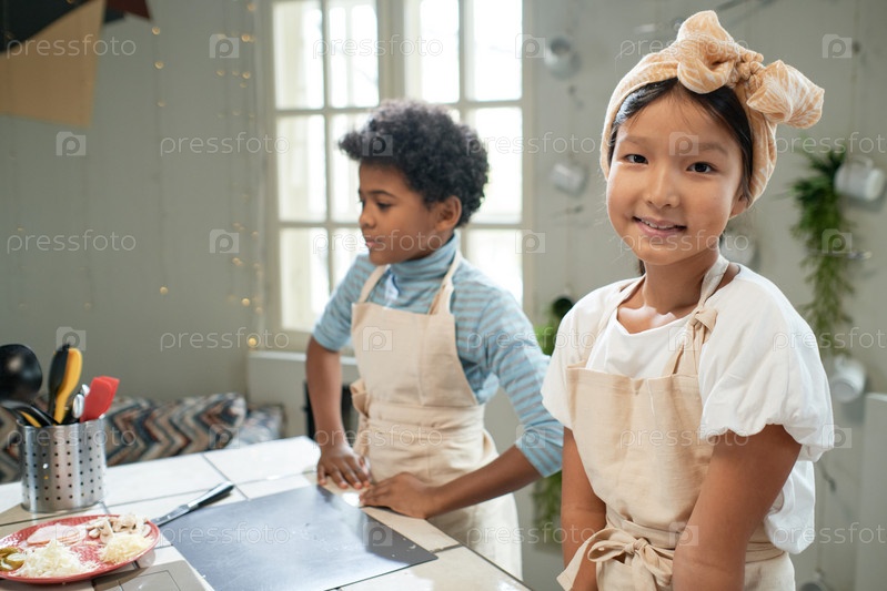 Девочка учится готовить на уроке