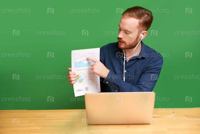 Презентация графика с помощью видеоконференцсвязи изолирована на зеленом фоне
