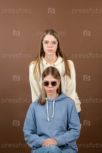 Две милые блондинки-подростки в трусиках и очках
