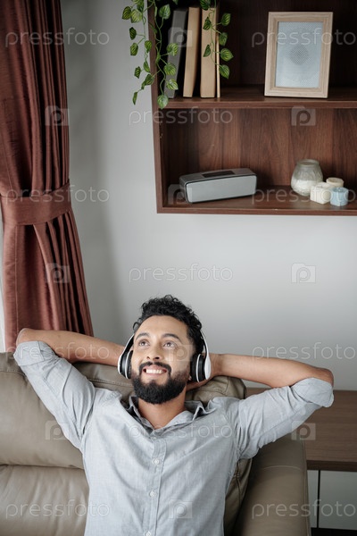 Позитивный мужчина, слушающий музыку