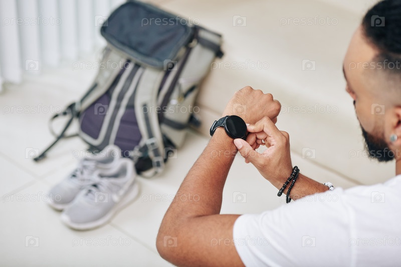 Мужчина проверяет умные часы