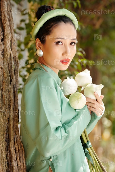 Красивая женщина с цветами лотоса