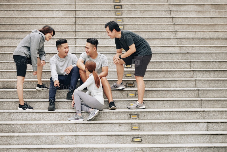 Фитнес-люди, отдыхающие на ступеньках