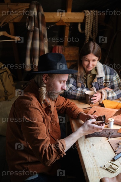 Мужчина, работающий в мастерской с помощником