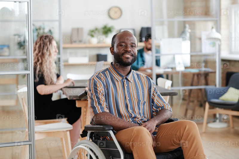 Инвалидный бизнесмен, работающий в офисе