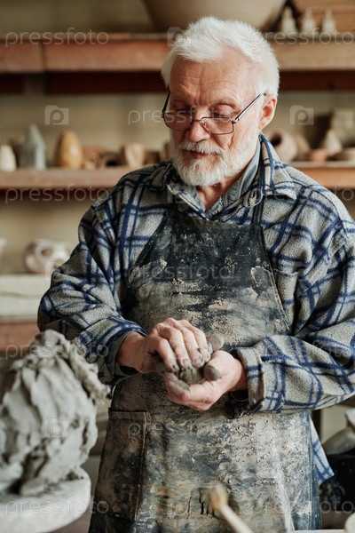Человек скульптурует фигуры из глины