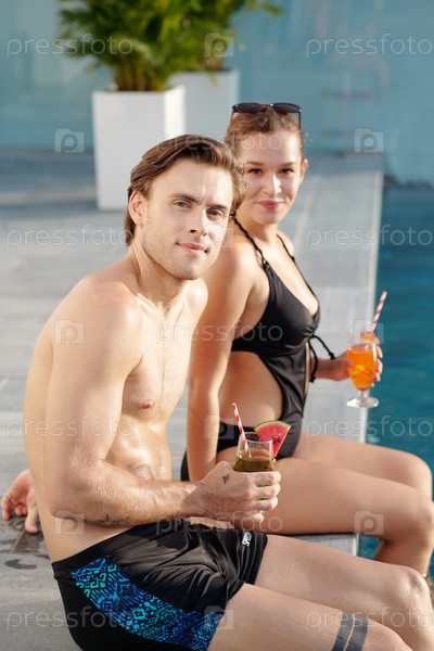 Парень и девушка пьют на свежем воздухе