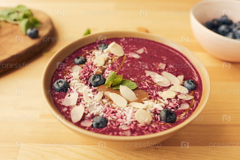 Чаша со свежим домашним смузи на деревянном столе