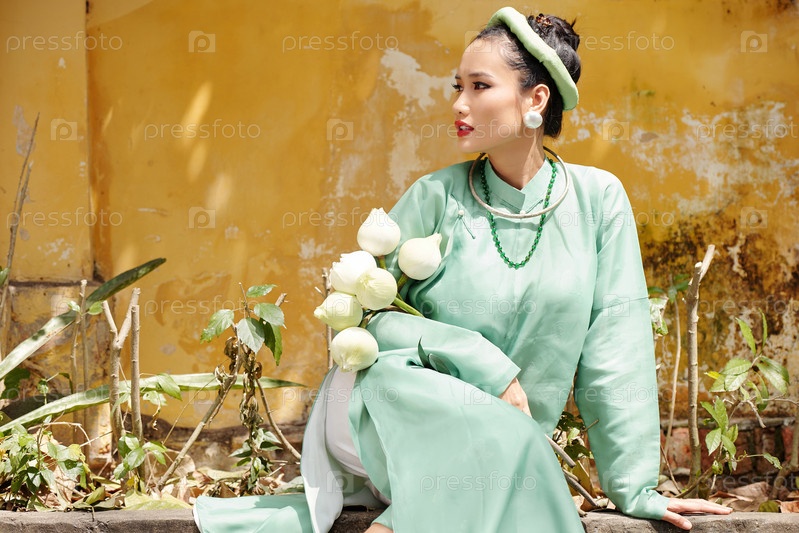 Вьетнамская женщина в мятно-зеленом традиционном платье