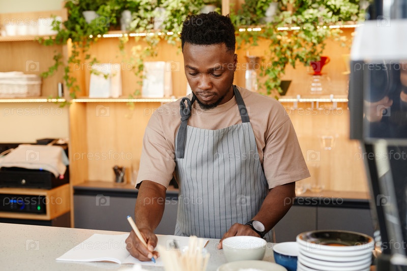 Работник кафе, делающий заметки