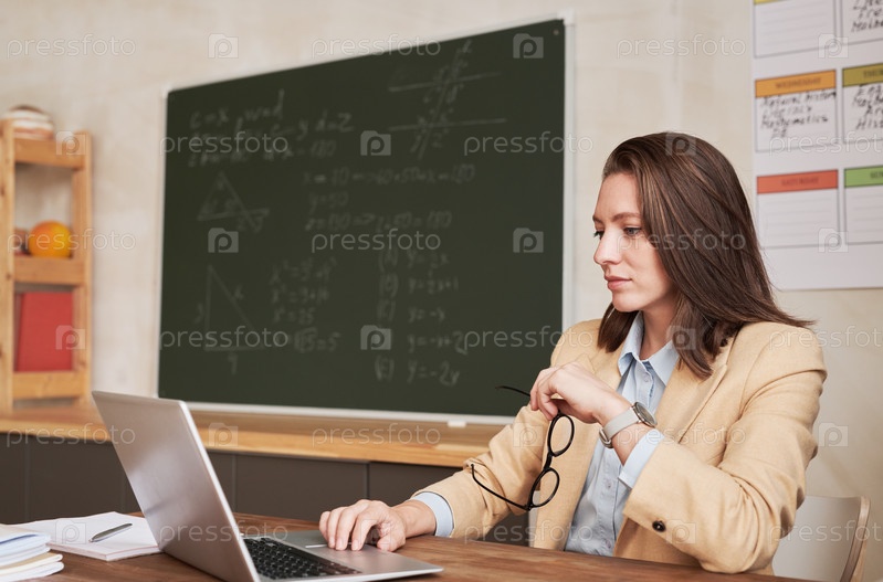 Учитель, работающий за столом в классе