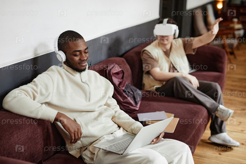Мужчина, использующий ноутбук для просмотра фильмов