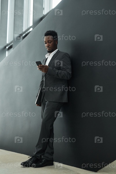 Афроамериканский бизнесмен использует телефон