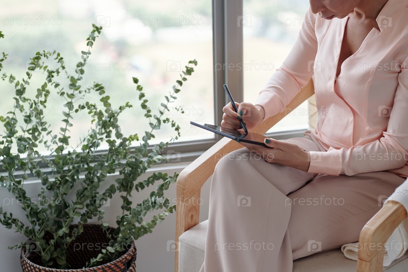 Женщина рисует на планшетном компьютере