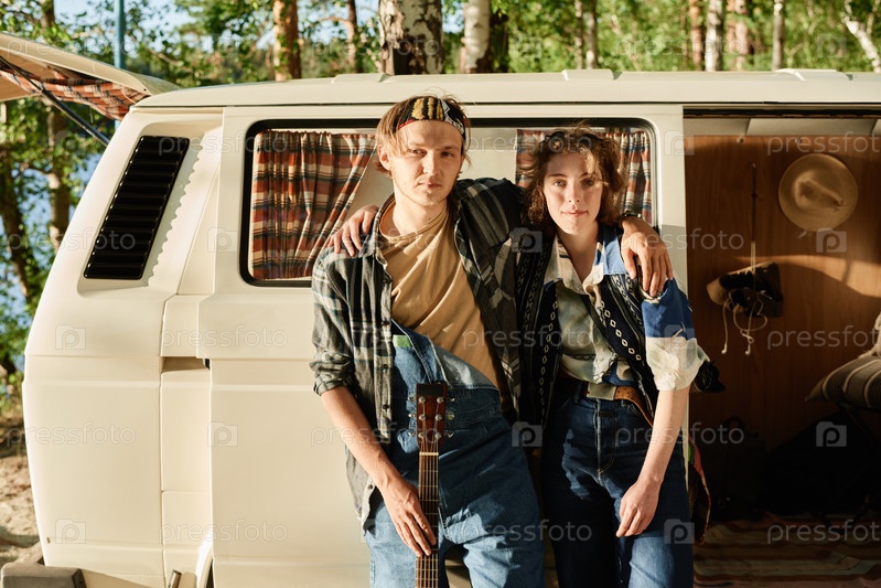 Молодая пара, путешествующая на машине