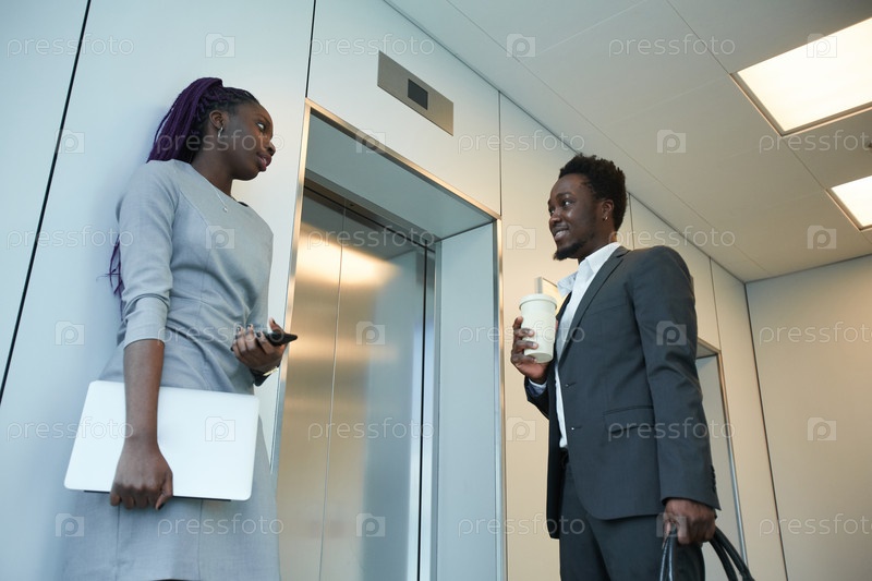 Бизнесмены, ожидающие лифта в офисе