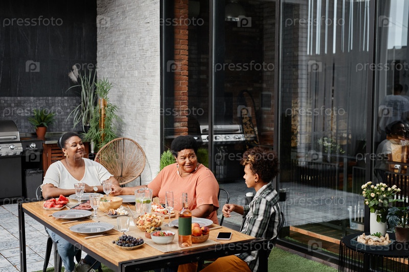 Африканская американская семейная трапеза на открытом воздухе