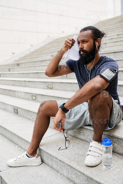 Вытирая пот с мужской салфеткой