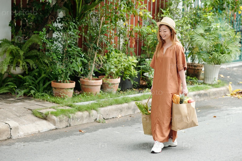 Женщина, идущая домой с рынка