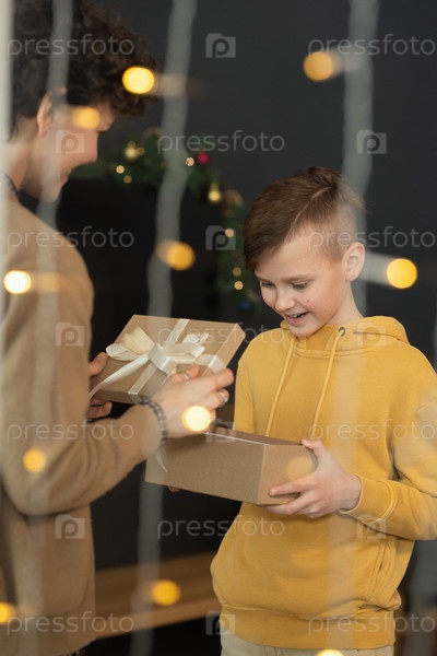 Открывающая коробка с рождественским подарком сыну