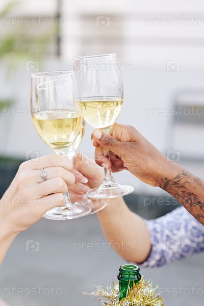 Женщины, приносящие тосты с винными стаканами