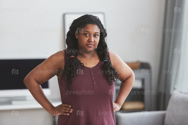 Афроамериканская женщина с избыточным весом дома