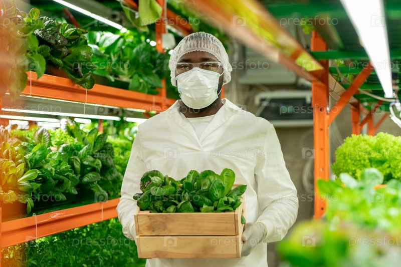 Афроамериканский работник теплицы, заменяющий саженцы