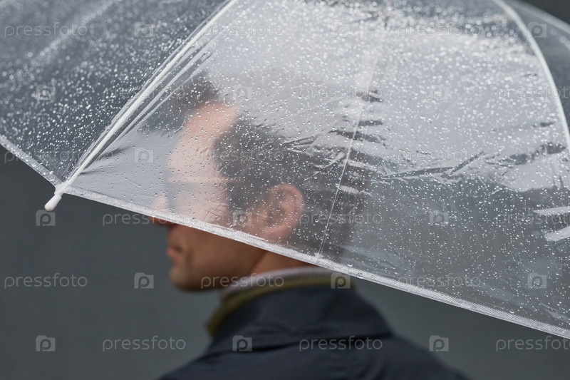 Человек, стоящий под прозрачным зонтиком